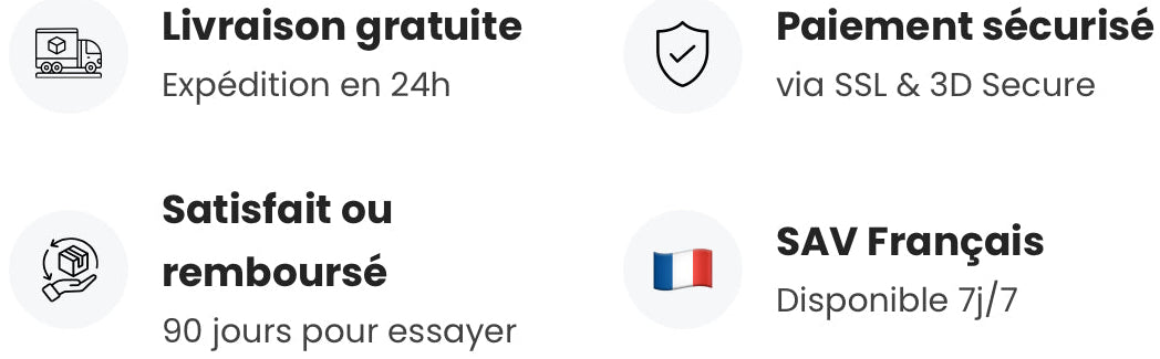 Si vous n’êtes pas satisfait du produit, vous disposez de 30 jours pour le retourner et recevoir un remboursement intégral